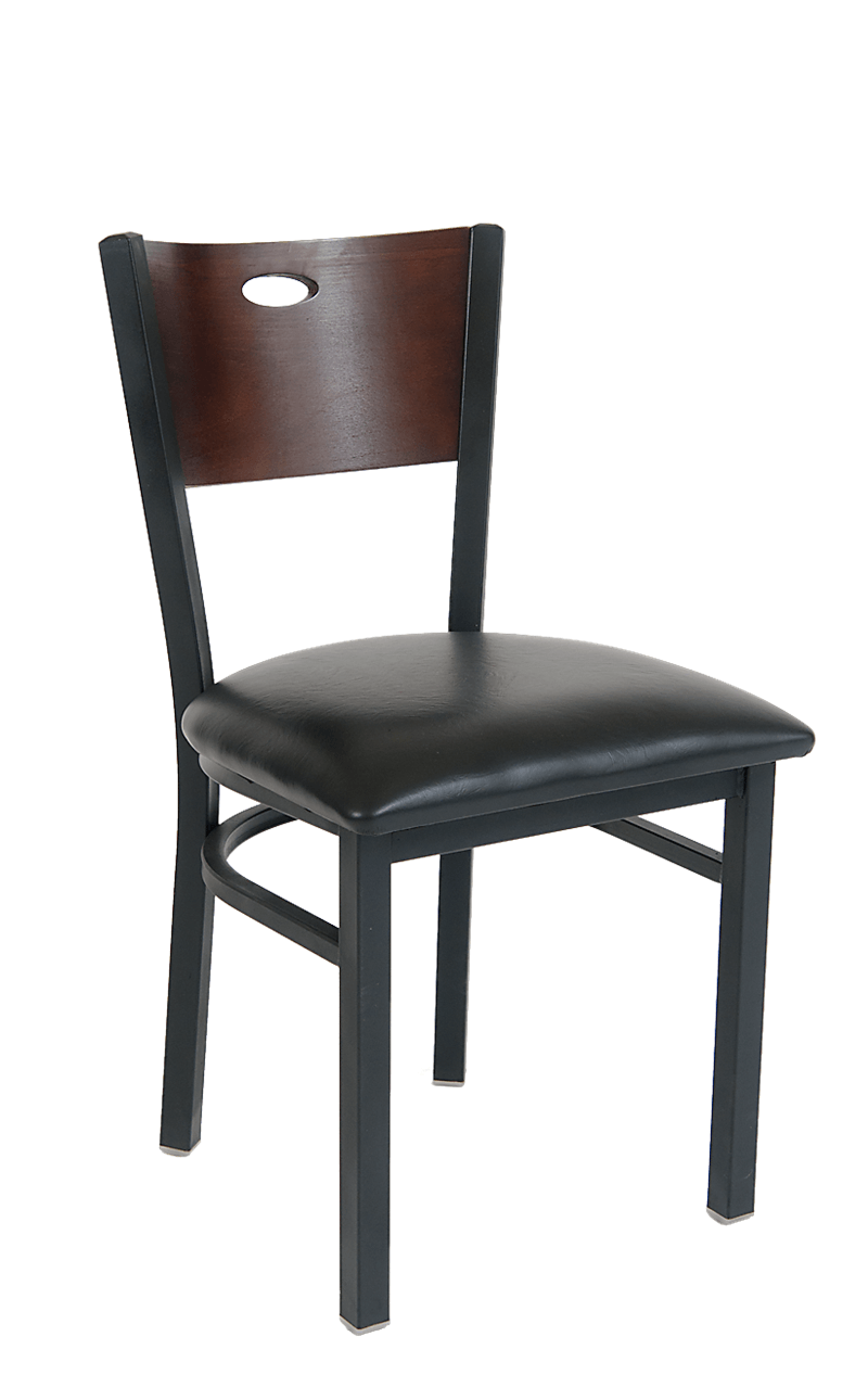 Indoor Black Steel Chair with Walnut Color Ashwood Back & Seat, Stackable
