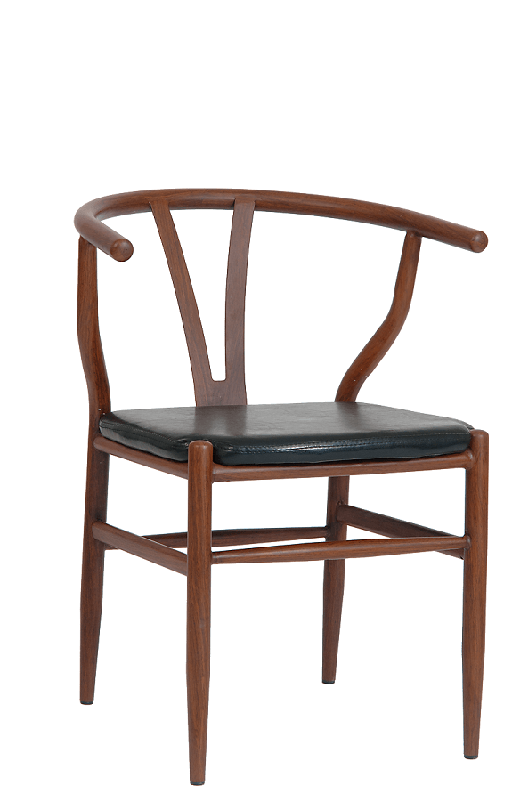 Indoor Steel Chair in New Gunmetal Color, ElmWood Back & Seat in Walnut Color