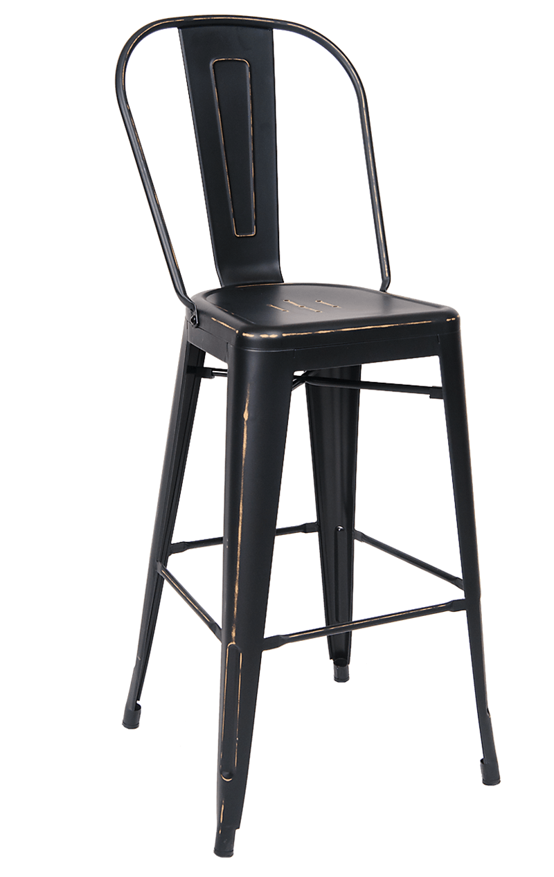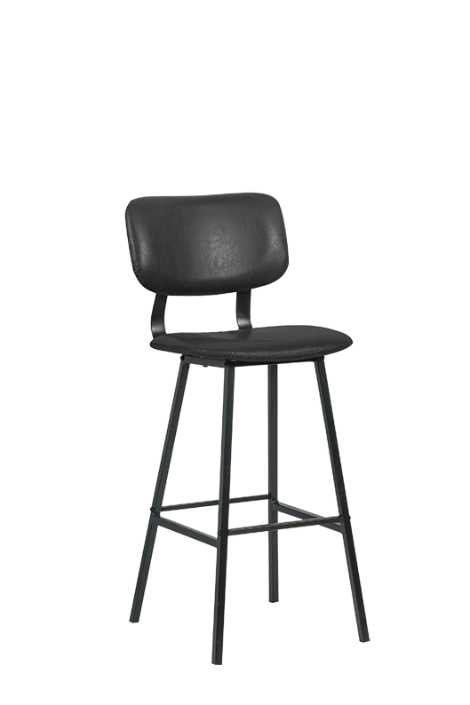 Black Steel Legs Barstool with Black Vinyl Back & Seat
