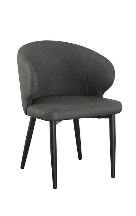 Black Steel Legs Armchair with Dark Gray Vinyl Seat & Stitched Back