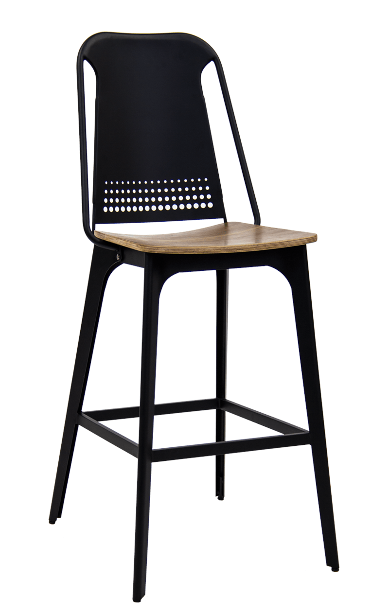 Black Metal Barstool w/ DM Veneer Back & Seat