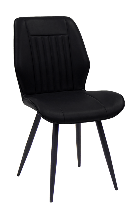 Black Steel Chair with Black Vinyl Seat & Stitched Back