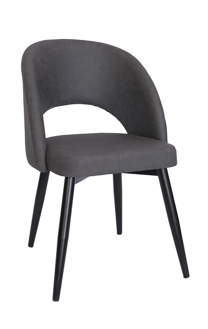 Black Steel Legs Grey Armchair with Vinyl Seat